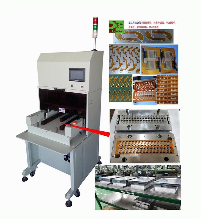 工作中下模采用自动推拉,减轻劳动强度,更提高安全度,同时取放成品十分方便。应用于电子行业如手机板,内存卡,手机软线路等分割。对于大批量通槽式PCB基板和软性线路板(FPC)的分割,效率尤为显著。配备安全感应装备。配模具使用,换模具简单方便。