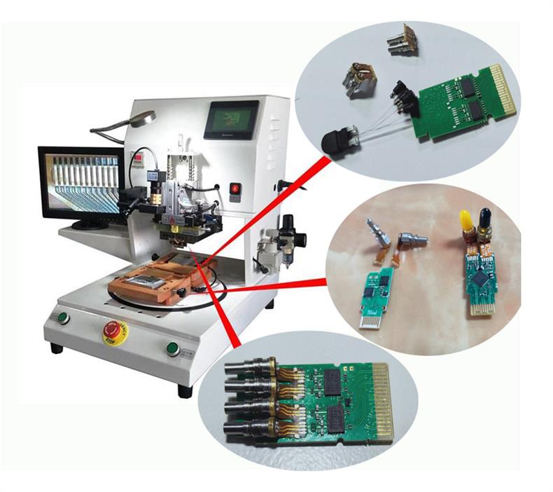 将工件置于夹具(如有需要,可启动真空将其固定)。将夹具送至焊接头下,按双开始键,焊接头下压着工件(开始加热),温度按输入参数迅速上升及准确恒温,最多可达4个温区(此时焊锡回流),吹气冷却(焊锡凝固),焊接头上升(完成)。