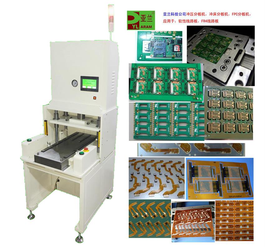 工作中下模采用自动推拉,减轻劳动强度,更提高安全度,同时取放成品十分方便。应用于电子行业如手机板,内存卡,手机软线路等分割。对于大批量通槽式PCB基板和软性线路板(FPC)的分割,效率尤为显著。配备安全感应装备。配模具使用,换模具简单方便。