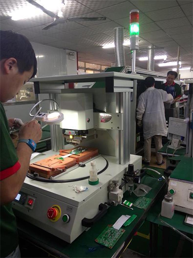 将工件置于夹具(如有需要,可启动真空将其固定)。将夹具送至焊接头下,按双开始键,焊接头下压着工件(开始加热),温度按输入参数迅速上升及准确恒温,可达4个温区(此时焊锡回流),吹气冷却(焊锡凝固),焊接头上升(完成)。