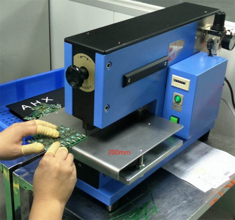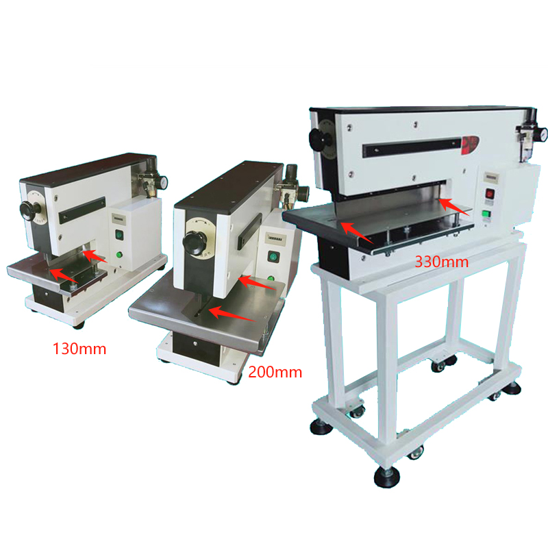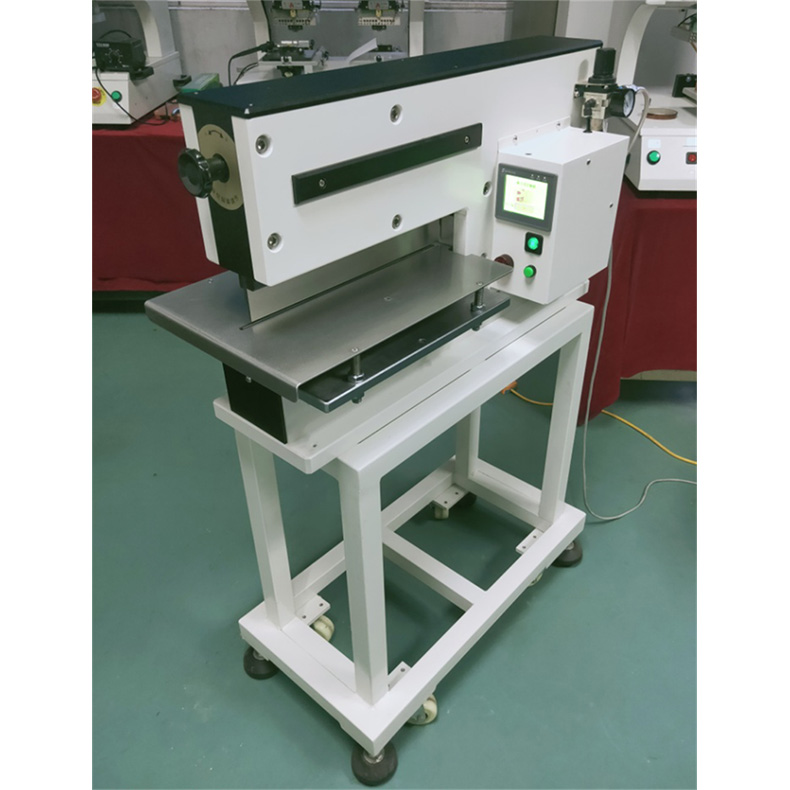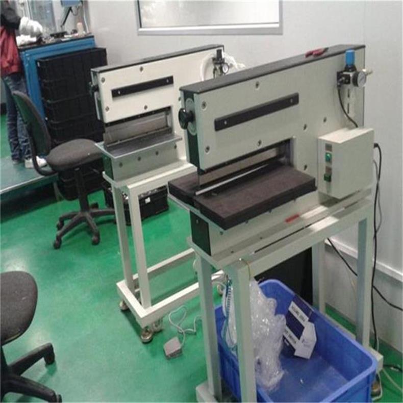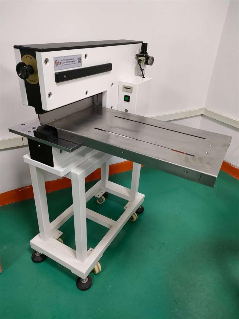 1、铡刀式分板机,电气混合式设计,双直刀分切,特别适用于分割精密SMD薄板,铝线路板