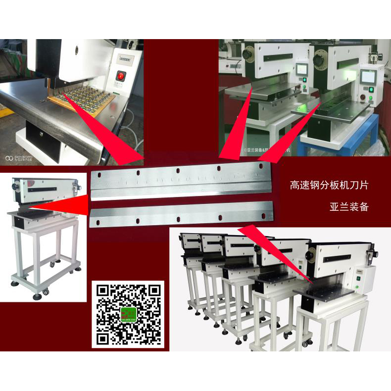 1、铡刀式分板机,电气混合式设计,双直刀分切,特别适用于分割精密SMD薄板,铝线路板