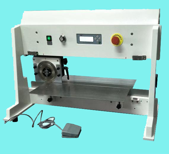 2,脚踩脚踏阀,圆形刀片左右移动,从而将V-CUT连板分离。